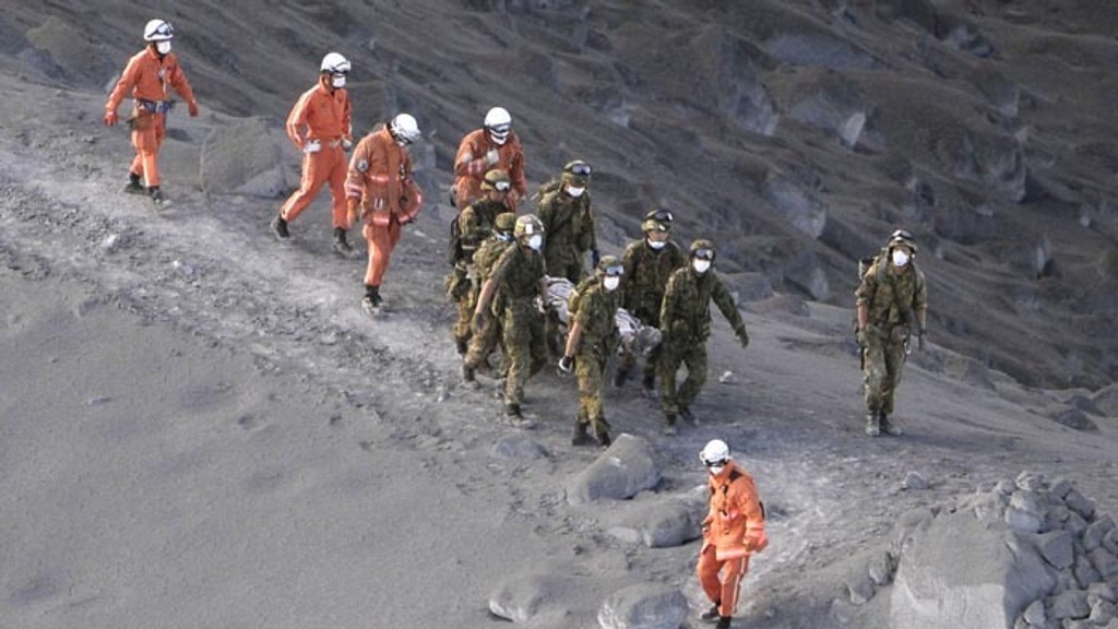 Počas prebiehajúcich prác záchranárov na sopke, z ktorej stále vychádzal dym, čakali príbuzní nezvestných na správy v neďalekej základnej škole. Japonské médiá uviedli, že niektoré telá našli v chate neďaleko vrcholu a ďalšie v sopečnom popole hlbokom do 50 centimetrov. Polícia oznámila, že dosiaľ identifikovali len dvoch zo štyroch potvrdených mŕtvych. Išlo o mužov vo veku 23 a 45 rokov.