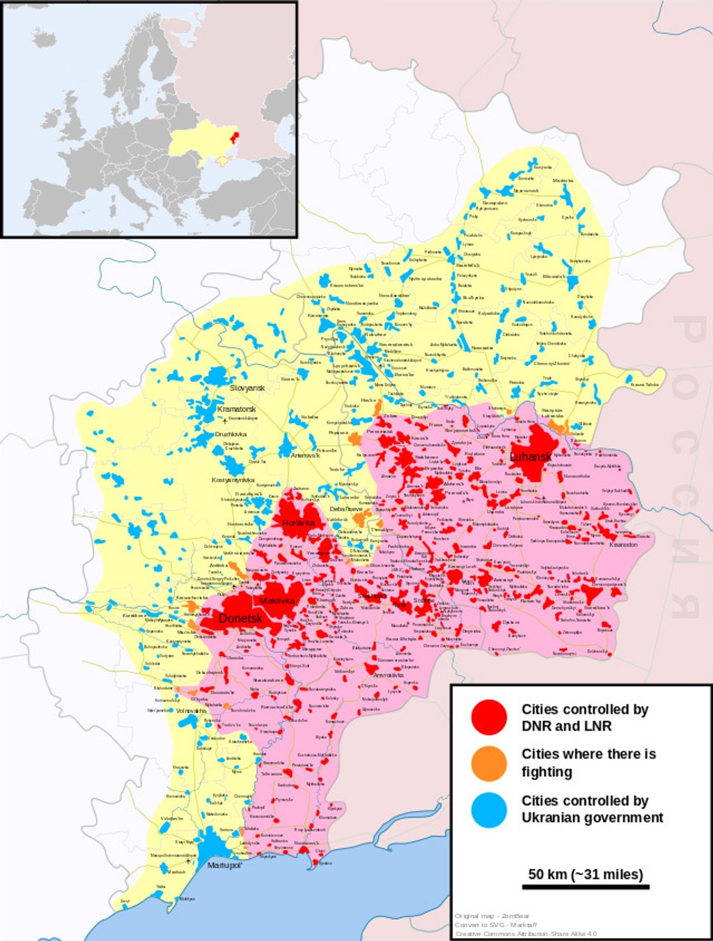 Vzhľadom na to, že Kyjev stratil kontrolu zhruba na polovicou pôvodnej Doneckej a Luhanskej oblasti, ktoré mali spolu 53-tisíc kilometrov štvorcových (Slovensko má 49-tisíc kilometrov), mohlo by ísť približne o polovicu územia Slovenska.