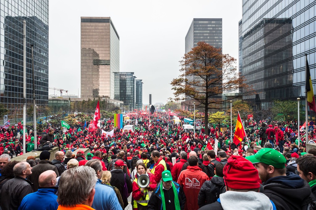 Takzvaná sociálna mobilizácia proti opatreniam novej vlády Charlesa Michela pritiahla do Bruselu zamestnancov zo všetkých kútov Belgicka, ktorí hromadne pricestovali vlakmi a autobusmi. Železničná spoločnosť SNCB oznámila, že na v protestný deň predala vyše 80.000 „štrajkových lístkov".
