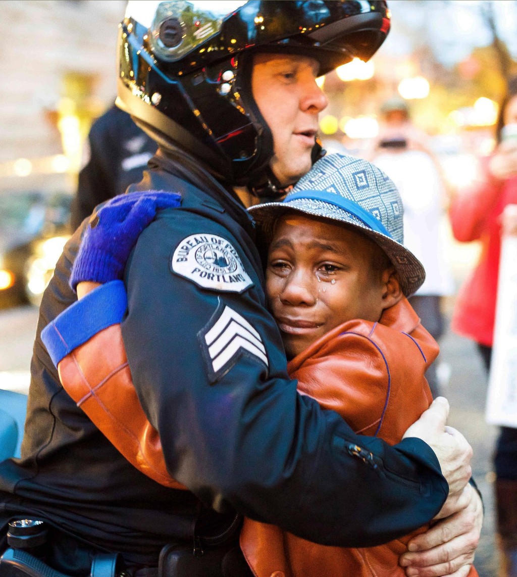 Jeden z takýchto protestov sa konal aj v Portlande. Nezávislý fotograf Johnny Nguyen na ňom zachytil okamih, ako 12-ročný černošský chlapec Devon Hart objíma so slzami v očiach bieleho policajta Breta Barnuma.