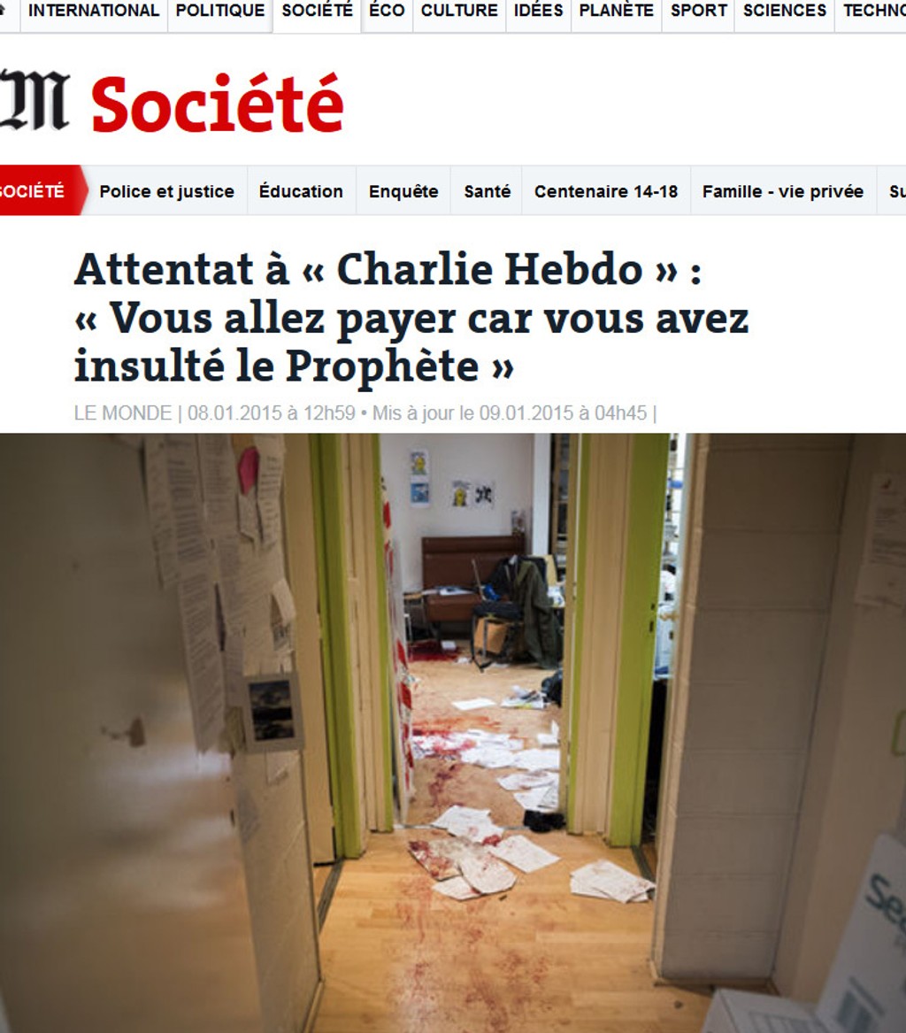 Dvaja maskovaní muži vtrhli dnu a umlčali hlasnú vravu. S puškami v ruke. Jeden z útočníkov oslovil šéfredaktora. „Charbo? Budeš platiť, pretože si urazil proroka," povedal a priložil mu zbraň k hlave.