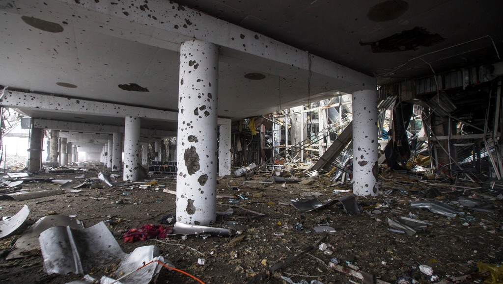 Nie je to tak dávno, čo cez letisko v Donecku prechádzali futbalisti mieriaci na Majstrovstvá Európy 2012 - zverejnili dokonca vymyslenú správu, že tam zabudli hviezdneho Cristiana Ronalda - ale v súčasnosti sú z neho už len trosky.