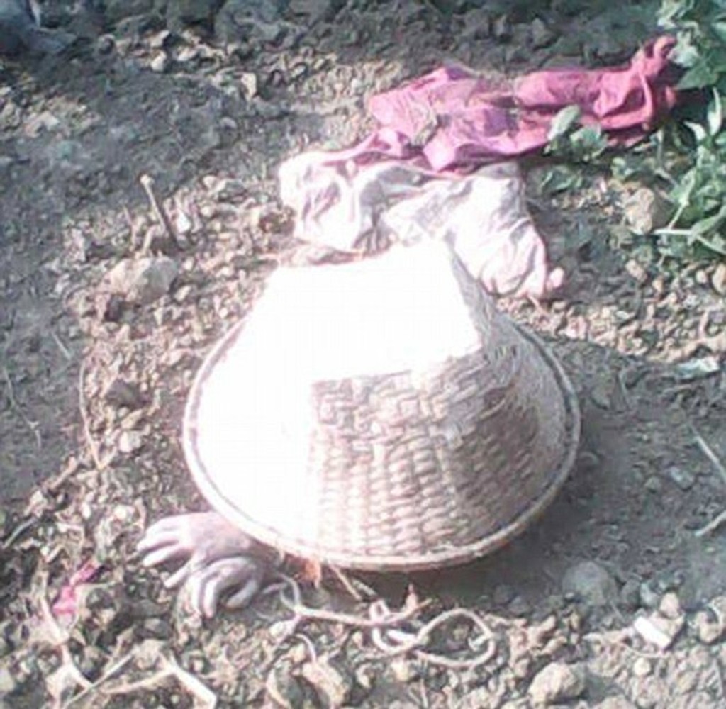 Policajti našli dievča zahrabané do pol pása v ich záhrade, ruky mala zviazané a na hlave mala položený bambusový kôš.