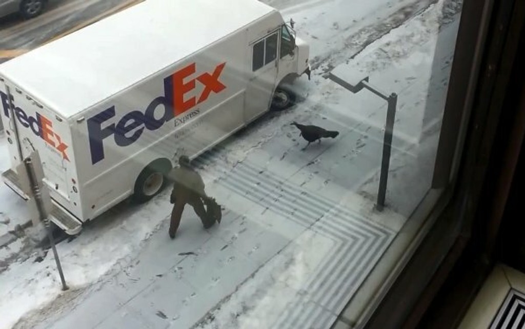 Kuriózna naháňačka sa odohrala v americkom štáte Minnesota. Kuriér nevedel moriaka odohnať, a tak sa radšej skryl vo svojej dodávke.