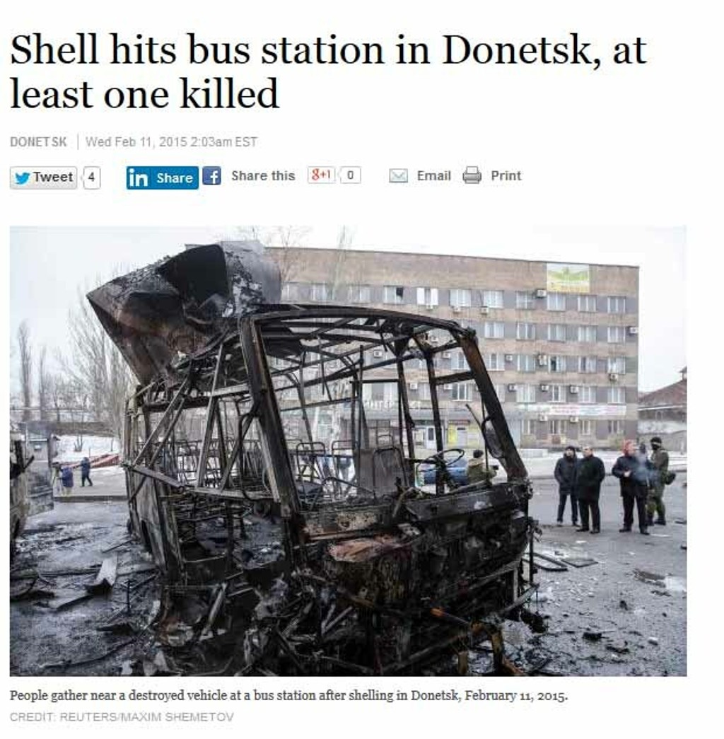 Najmenej jeden človek dnes prišiel o život, keď delostrelecký granát zasiahol autobusovú stanicu v centre Donecka na východe Ukrajiny. Informovala o tom agentúra Reuters.