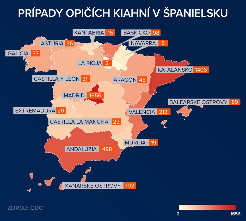 Keďže sme v polovici letných prázdnin a mnoho Slovákov vyráža za hranice, pripravili sme pre vás mapu s najväčšími ohniskami výskytu opičích kiahní. Do konca júla sme totiž u nás zaznamenali šesť prípadov vírusu a k nákaze došlo pravdepodobne na dovolenke v zahraničí. Ide o osoby vo vekovej skupine 20 až 59 rokov. „Úrad verejného zdravotníctva nebude k týmto prípadom poskytovať doplňujúce informácie. Prosíme o rešpektovanie ochrany osobných údajov a práv pacientov,“ uviedol pre TVNOVINY.sk Marek Eliáš z odboru komunikácie.