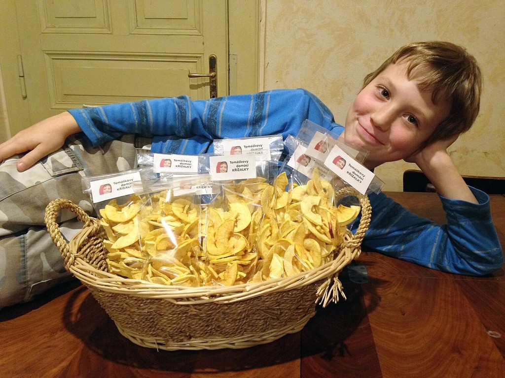 Jeho rodina vlastní sad, kde pestuje jablká. Tomáš ich suší a predáva. Balenie stojí 40 českých korún, čo je v prepočte 1,46 eur. Balenia so sušenou pochúťkou buď osobne klientom doručí, alebo posiela poštou.
