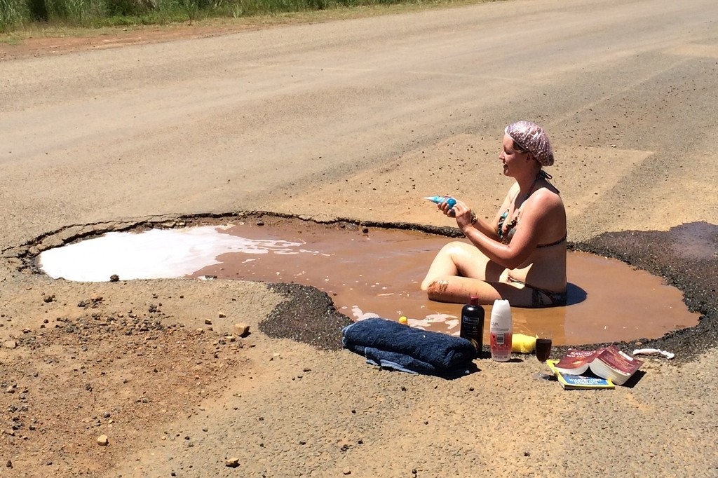 Britská učiteľka Rosie Morrisonová sa rozhodla upozorniť na nebezpečné cesty v JAR naozaj originálnym a zároveň vtipným spôsobom. Z obrovskej diery na ceste si urobila provizórny bazén.