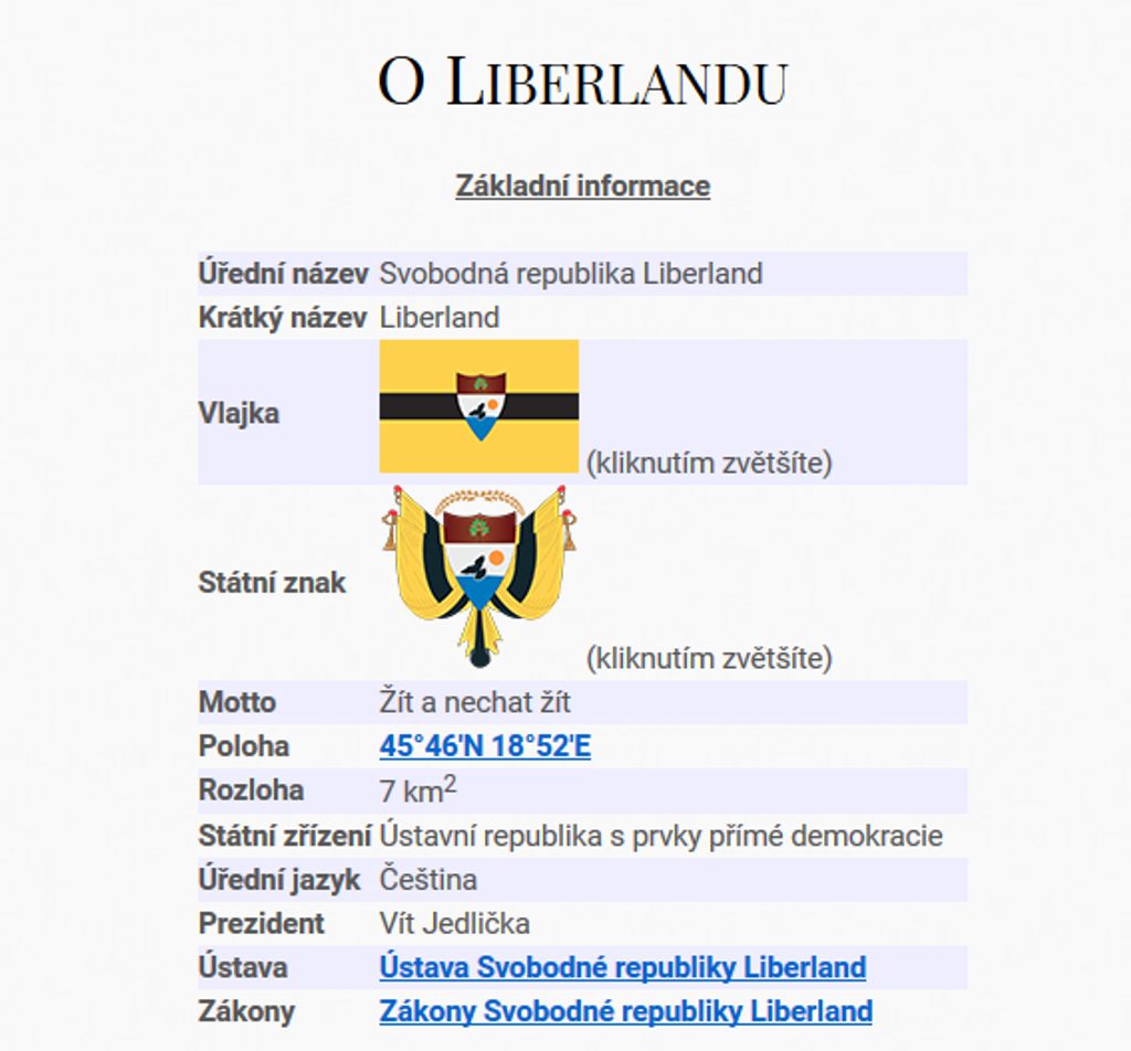 Liberland má už svoju vlajku, štátny znak, motto ("Žiť a nechať žiť") a webovú stránku (http://liberland.org).
