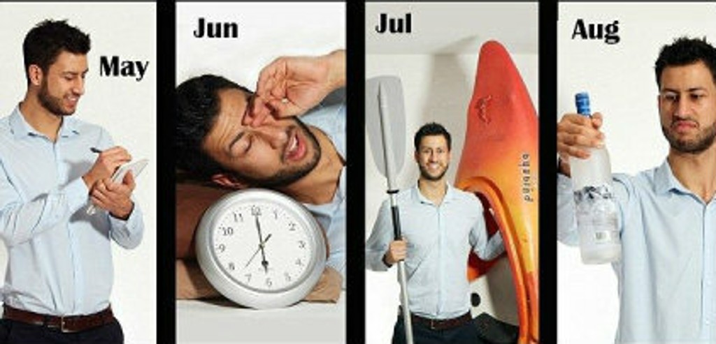 V júni vstával každé ráno (aj počas víkendov) o šiestej. V júli chodil do práce na kajaku a v auguste nevypil ani kvapku alkoholu.
