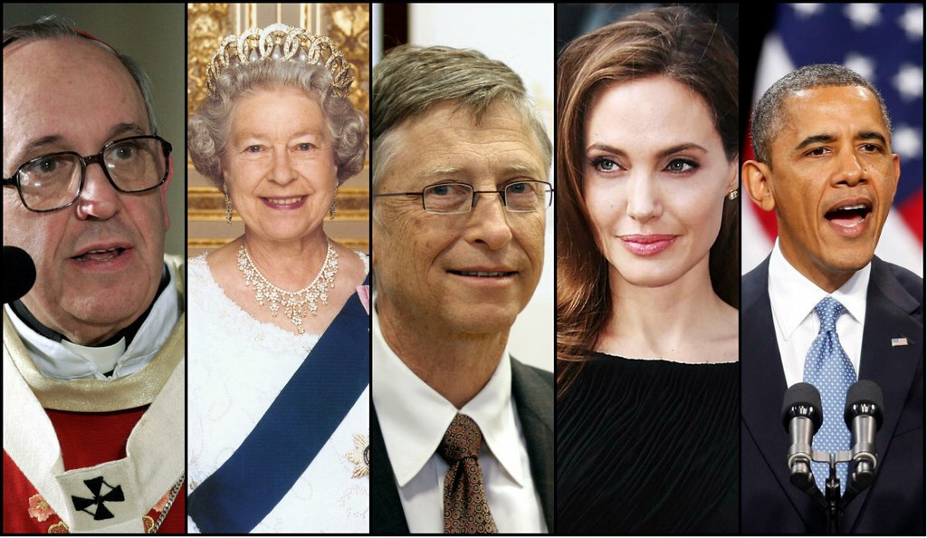 Na druhom mieste celosvetového rebríčka je americký prezident Barack Obama, na treťom ruský líder Vladimir Putin a za ním nasleduje pápež František. Prvú päticu uzatvára indický hráč kriketu Sačin Tendulkar.