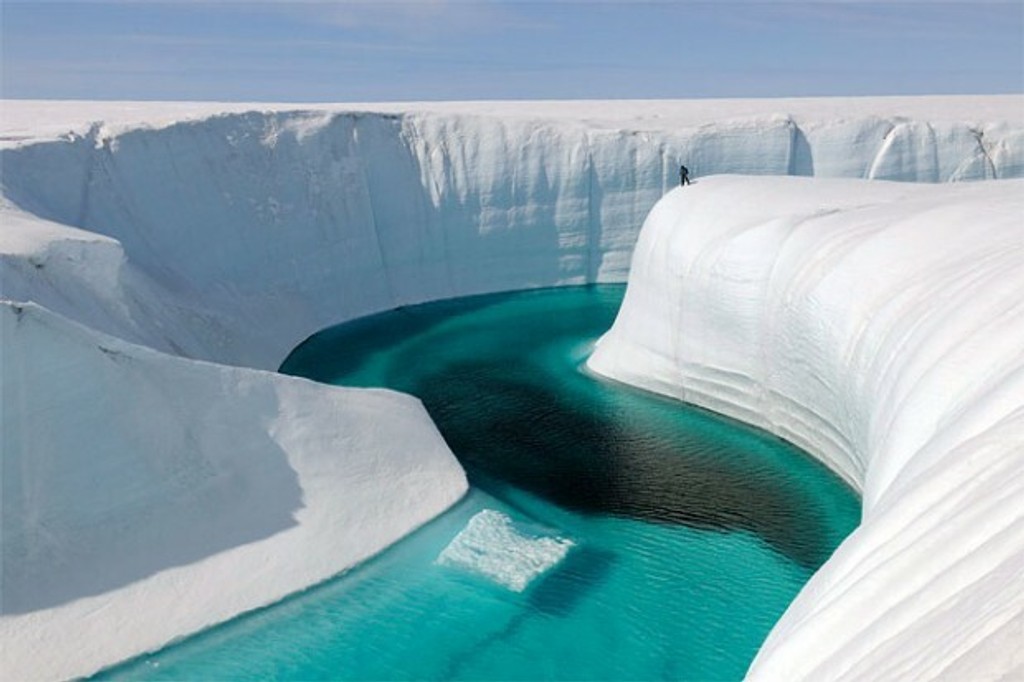 Preteká ním modrá, krištáľovo čistá voda. Snímky vznikli pri nakrúcaní dokumentu o klimatických zmenách pod názvom Hon za ľadom. Ich autorom je fotograf James Balog.