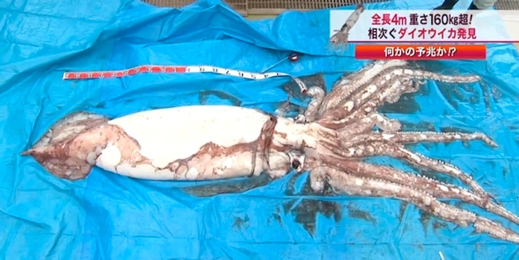 Rybár Shigenori Goto objavil mäkkýša zachyteného v rybárskej sieti približne kilometer od pobrežia.
