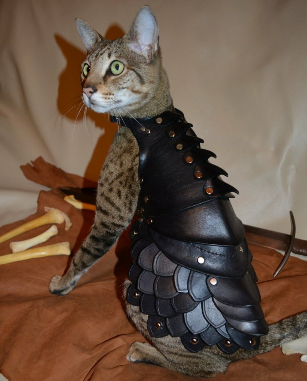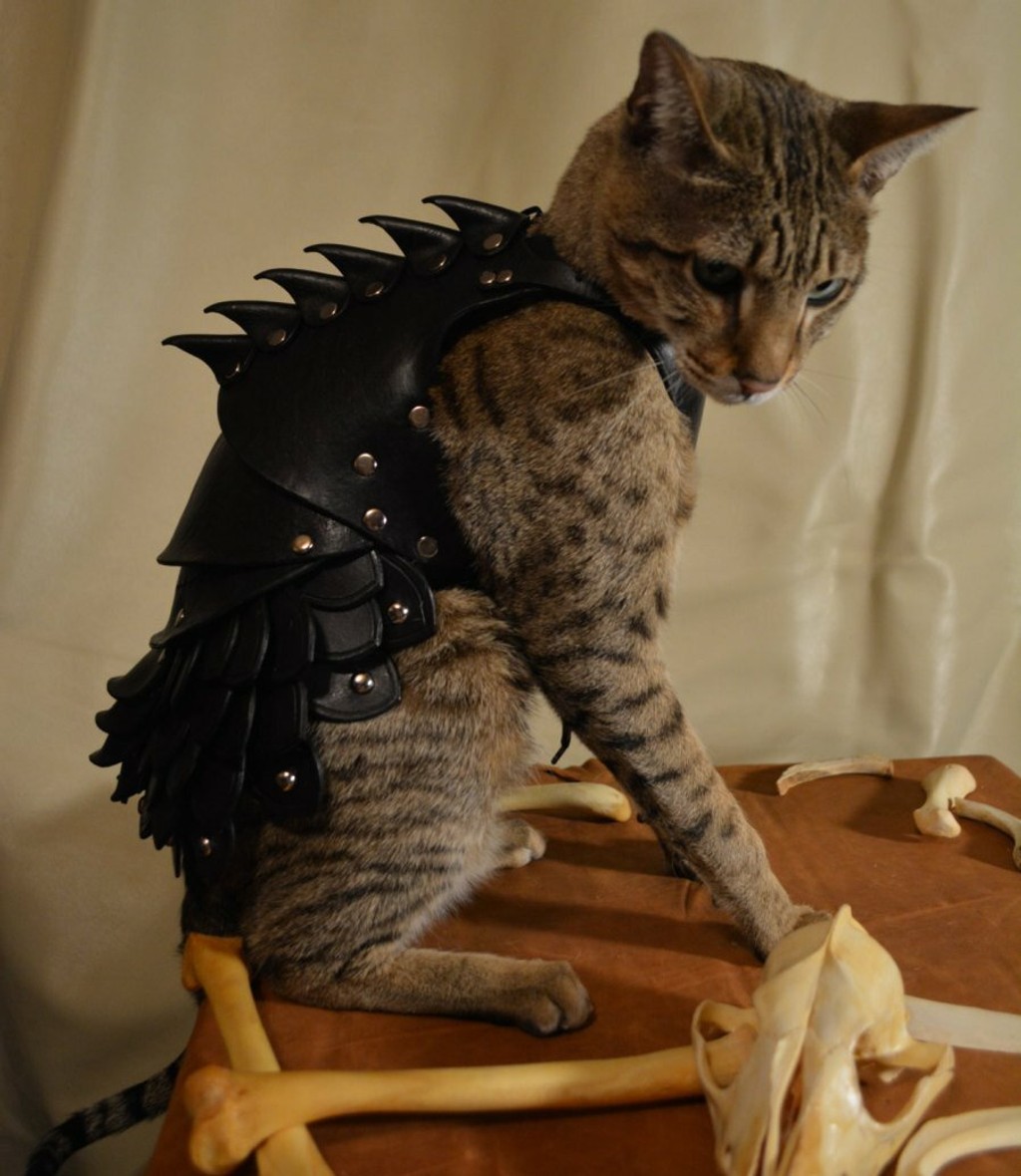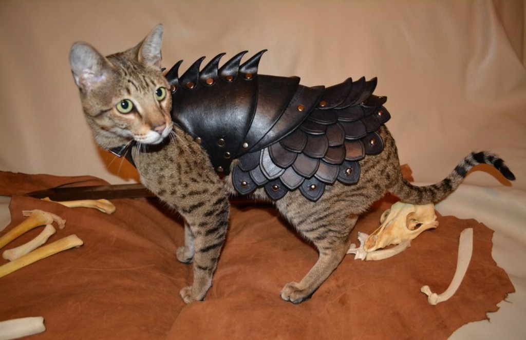 Oblek z ručne šitej kože účinne ochráni mačku nielen pred zimou, ale ja pred útokmi od iných mačiek. Vo výstrednom oblečení bude mačka v bezpečí a bude pri tom aj dobre vyzerať. Zaplatíte zaň okolo 360 eur.