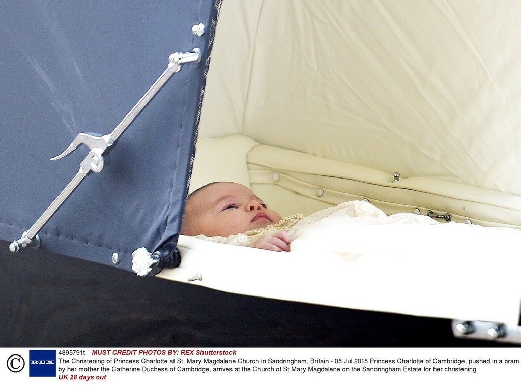 Verejnosť ju mala príležitosť vidieť dnes po druhý raz odkedy sa 2. mája narodila. Charlotte je v nástupníckej línii na trón štvrtá po svojom starom otcovi, otcovi a bratovi.