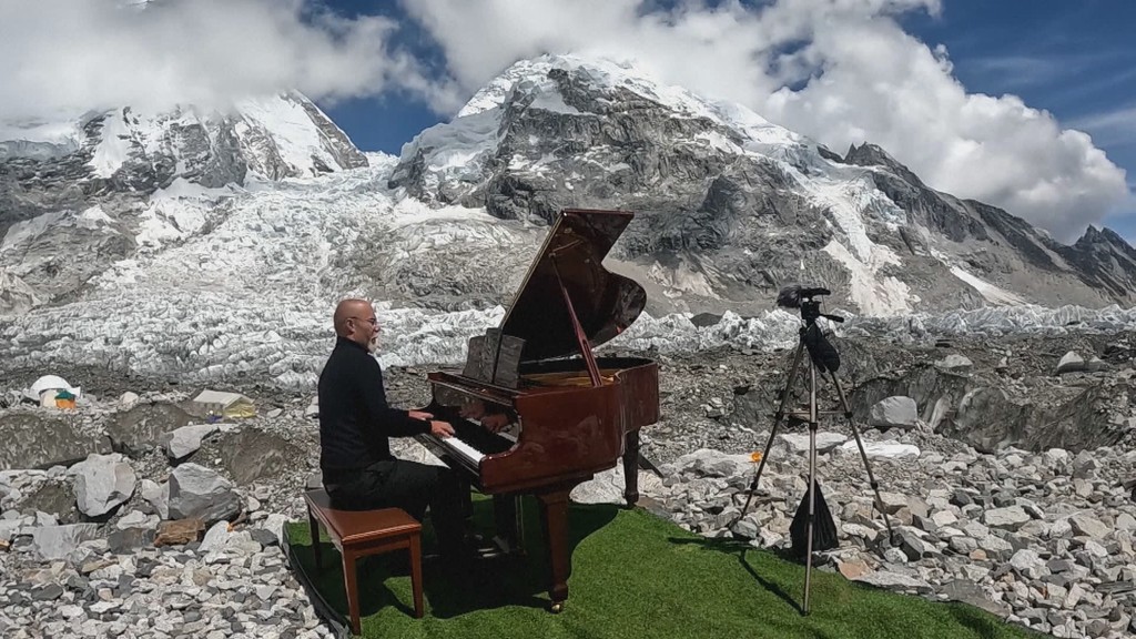Klavír dostali do základného tábora pomocou helikoptéry.