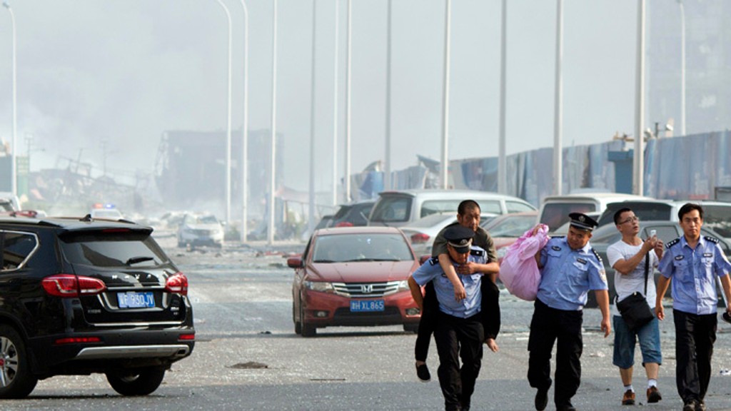 Po oslnivom záblesku sa nad mestom zdvihol vysoký prachový hríb. Na miesto výbuchu neďaleko prístavnej časti mesta bolo vyslaných približne 100 hasičských vozidiel. Čínsky prezident Si Ťin-pching vyzval príslušné úrady, aby sa bezodkladne postarali o bezpečnosť obyvateľov a ich majetku.
