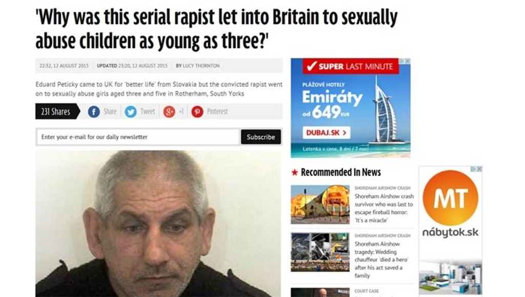Eduard Petický bol na Slovensku odsúdený na odňatie slobody v roku 1998 za to, že spolu so svojimi komplicmi znásilnili dve ženy v parku. Ihneď po prepustení chcel začať žiť nový, lepší život, a preto odcestoval do Anglicka. Z Británie ho nevykázali, pretože chýba medzinárodný register sexuálnych delikventov. Angličania nič nevedeli o jeho odsúdení za znásilnenie, sexuálnom zneužívaní a lúpežiach na Slovensku.