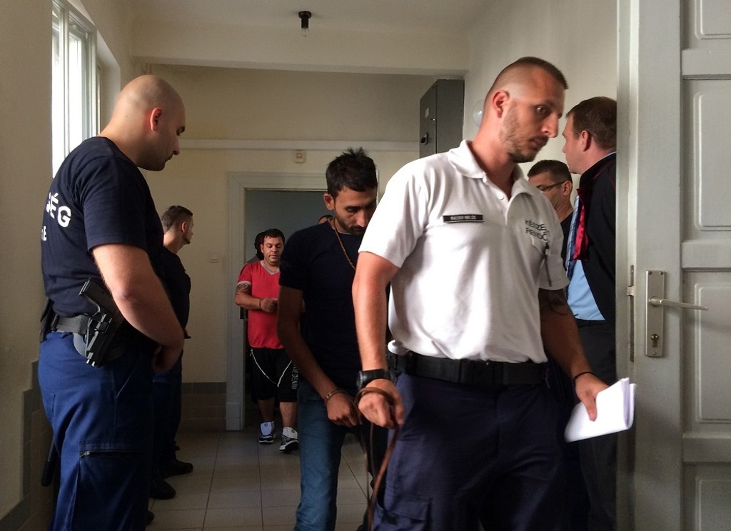 Na takmer tri hodiny trvajúce pojednávanie v budove Okresného súdu v Kecskeméte, ktoré sledovalo množstvo zahraničných novinárov, priviedli podozrivých v putách po jednom.