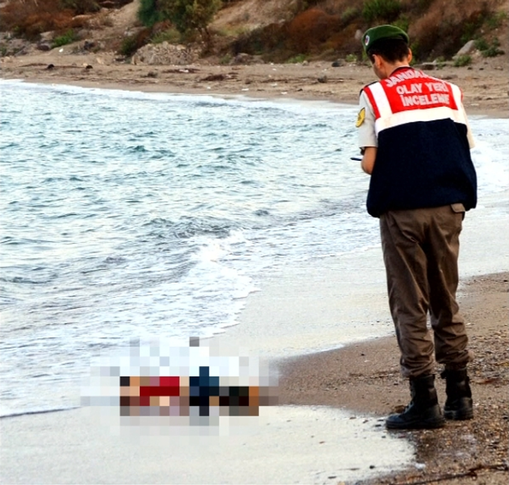 Chlapec nemal viac ako tri roky. More ho vyplavilo na pláž v meste Bodrum. Bezduché telo našli miestni policajti. Osud zvyšku jeho rodiny známy nie je. Predpokladá sa, že patrí medzi 11 obetí nehody lodí, ktoré stroskotali neďaleko tureckého pobrežia.