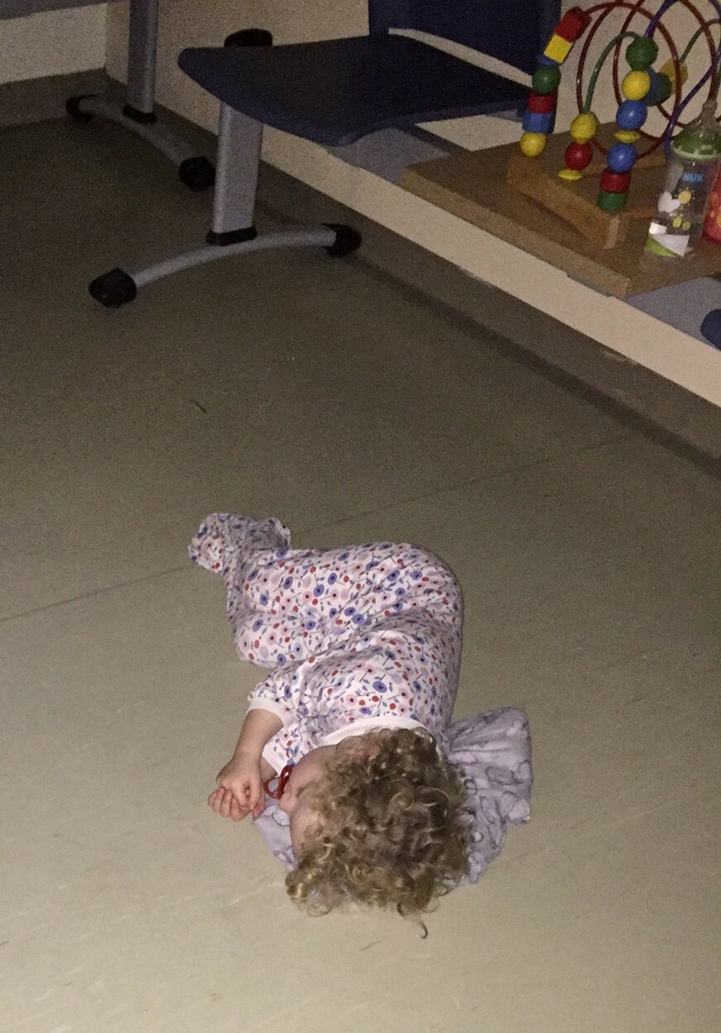 Dievčatko tak spalo na podlahe v Royal Hospital Preston v Lancashire. Jeho 22-ročná mama sa rozhnevala práve kvôli tomu, že jej dcérku v nemocnici neuložili do postele. "Neustále som sa ich pýtala, či by nám jednu posteľ nepridelili, ale povedali mi, že pokiaľ ju nevyšetria, nemôže opustiť čakáreň," povedala pani Dingall.