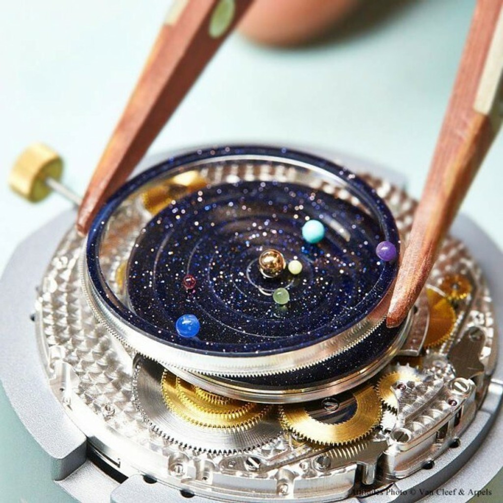 Na vytvorenie moderného malého planetária sa tvorcovia inšpirovali osemnástym storočím. Každá planéta je vyrobená z iného drahokamu a polodrahokamu, predávajú sa v ružovom zlate s čiernym koženým remienkom za 180-tisíc eur! Dostupné zatiaľ nie sú.