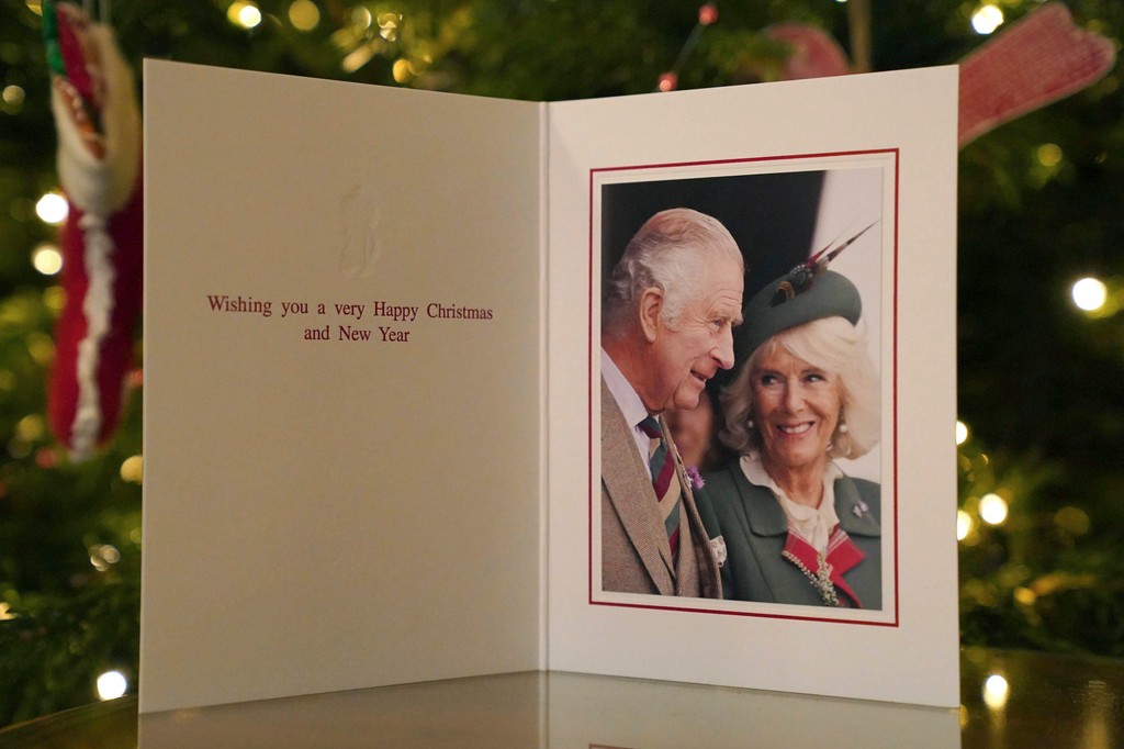Panovníci vybrali staršiu fotografiu, urobenú 3. septembra, na tradičných hrách v Škótsku. Pohľadnica obsahuje aj krátky text. Kráľ všetkým želá šťastné Vianoce a Nový rok.