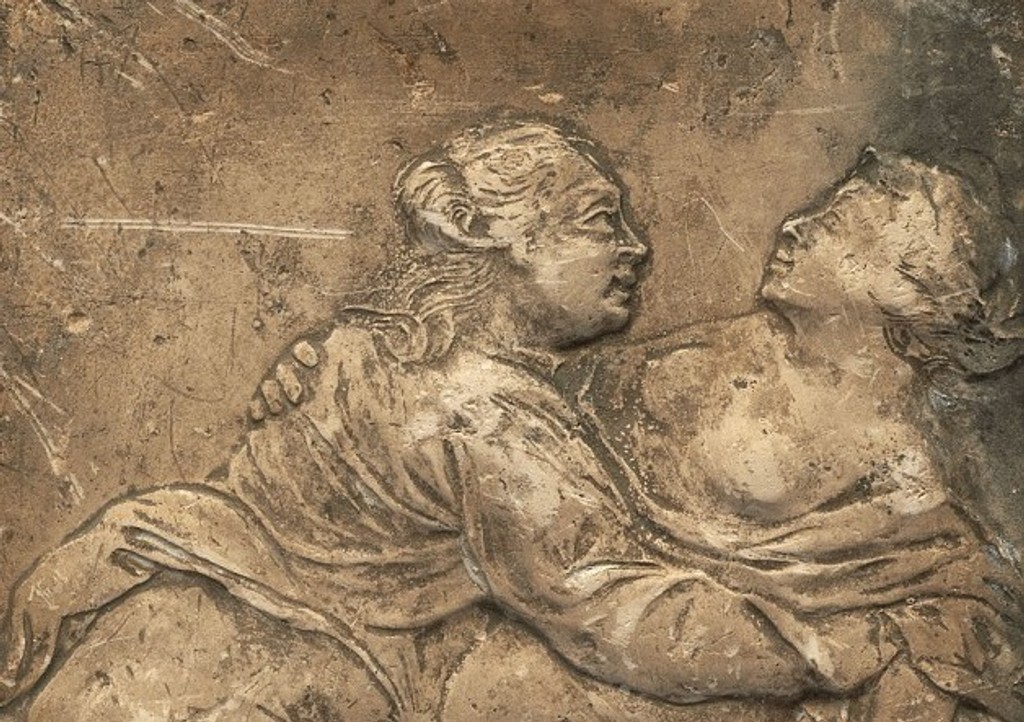 Dlaždice z 18.storočia zobrazujú milujúce sa páry.