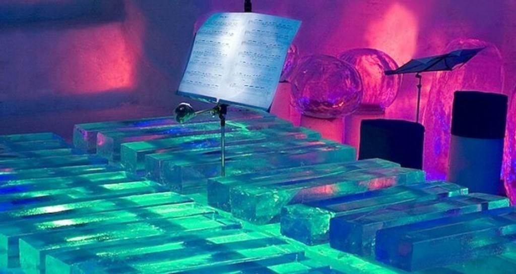 Nástroje pripomínajú ľadové sochy, ktoré však majú všetky dôležité hudobné prvky. Napríklad struny. Bez nich by to určite nešlo.
