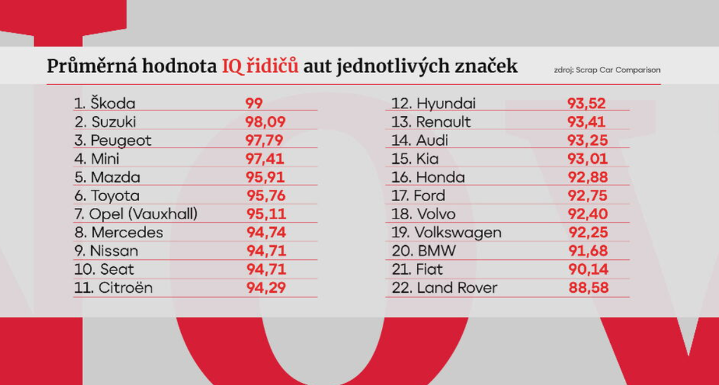 Jeden z opýtaných odborníkov podotkol, že ak by to bola pravda a pozreli by sme sa na predaje škodoviek v Česku, znamenalo by to, že sú práve Česi najinteligentnejším národom sveta.