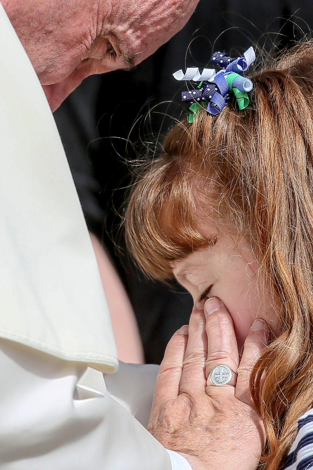 Pápež František prijal dnes po generálnej audiencii rodinu Myersovcov z amerického štátu Ohio, aby tak splnil prianie šesťročnej Lizzy, ktorá v dôsledku dedičného ochorenia Usherov syndróm II príde postupne o zrak i sluch. Dievčatko podľa slov rodičov Steva a Christine Myersovcov, ktorí spoločne s jej sestrou Kaylou nechýbali na prijatí, o ochorení diagnostikovanom u nej v roku 2014 zatiaľ nevie.
