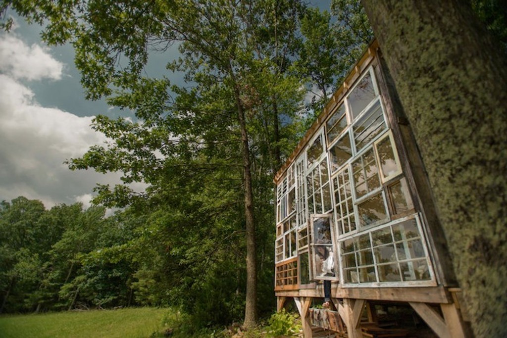 Na okraji lesa vo Virgínii „vyrástla" útulná moderná chatka zo skla. Chatu, ktorú pár využíva na oddych, tvoria použité okná rôznych veľkostí z inej neobývanej stodoly. Elektrinu a kanalizáciu by ste tam hľadali márne. Čarovné miesto je celkom späté s prírodou.