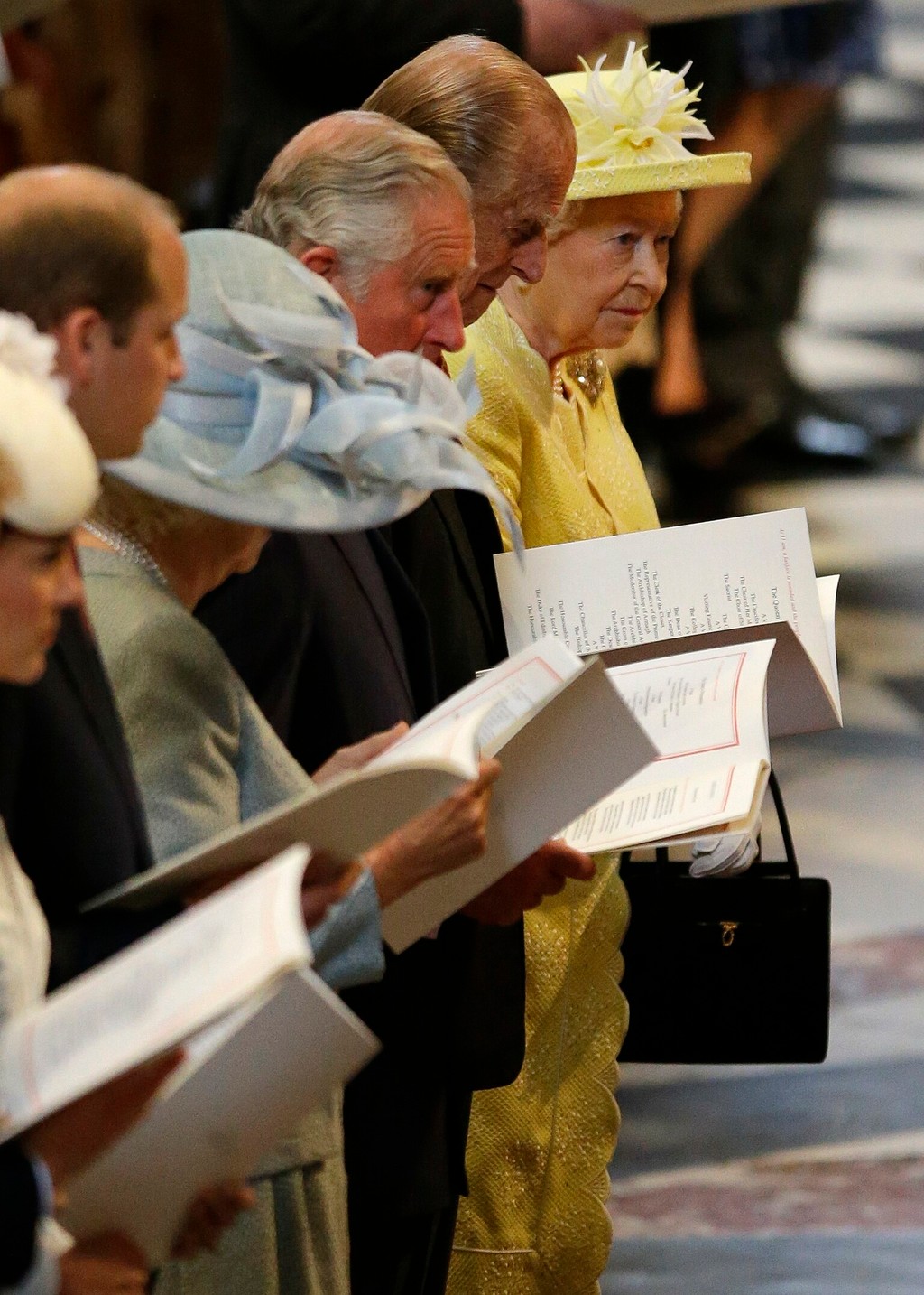 Kráľovná do katedrály dorazila v žltých šatách a klobúku, pripomínajúcich farbou žiarivé slnko, po boku s manželom, princom Philipom, ktorý dnes oslavuje 95. narodeniny. Pred katedrálou ju vítali davy nadšených fanúšikov.