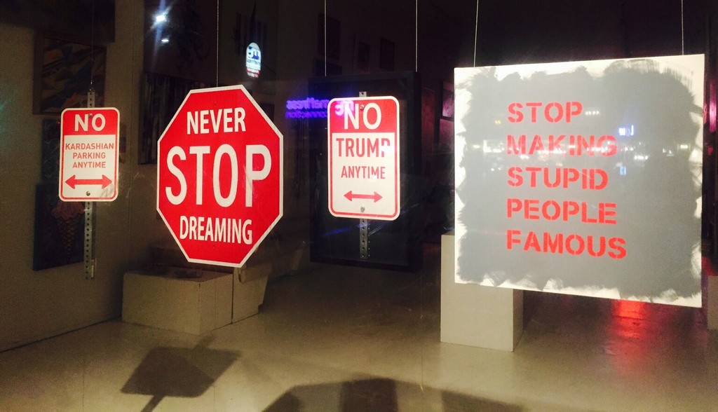 Napríklad vymyslel aj paródie dopravných značiek, bojujúce proti jeho zvoleniu alebo kritizujúce klan Kardashianovcov.