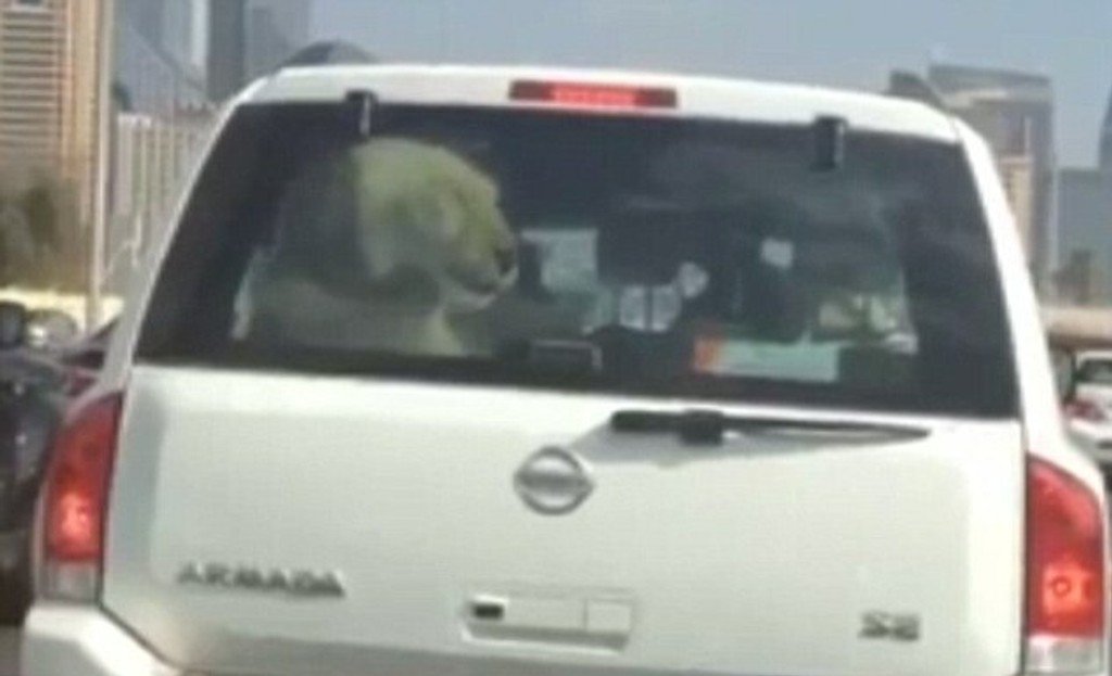 Ohromený motorista z Dubaja neveril vlastným očiam - z kufru auta sa na neho pozeral lev!