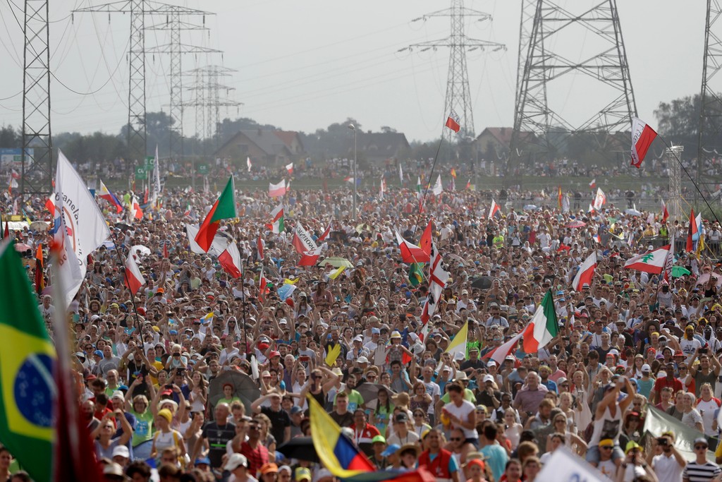 Pápež František prišiel na miesto po deviatej hodine. V papamobile absolvoval osemkilometrovú púť medzi sektormi. Vítali ho nadšení mladí ľudia z takmer 200 krajín zo všetkých kontinentov. Veľká časť mladých pútnikov strávila na tomto mieste celú noc, kde sa zapojili do modlitieb, spevu a tancov. Podľa odhadov organizátorov ich bolo v sobotu na mieste okolo 1,6 milióna. Bola medzi nimi aj vyše štvortisícová skupina zo Slovenska.