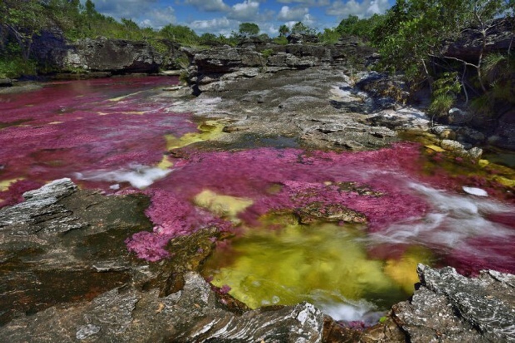 Hladina vody stúpa a prúd klesá, čím sa vodné rastliny Macarenia clavigera dostanú po celej rieke a nádherne ju zafarbia doružova. Fotky tejto krásy urobil fotograf Olivier Grunewald.