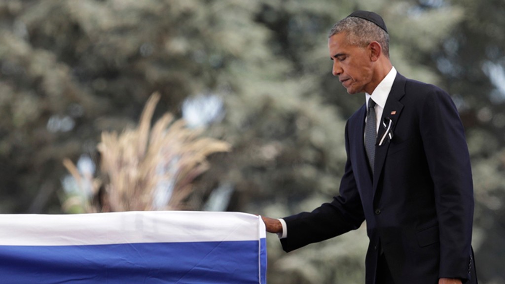 "Z osobných rozhovorov viem, že jeho sen o mieri nebol naivný. Trval na tom, že Izraelčania a Palestínčania si musia byť rovní," vyhlásil Obama, ktorý spomenul aj prítomnosť palestínskeho prezidenta na pohrebe a označil ju za pripomenutie, že mier medzi Izraelčanmi a Palestínčanmi je ešte "nedokončenou stavbou".
