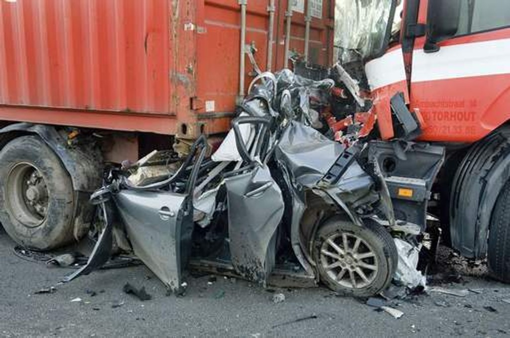 Diaľnica spájajúca regionálnu priemyselnú križovatku Kortrijk s neďalekým Ieperom bola posiata troskami na troch miestach blízko seba.