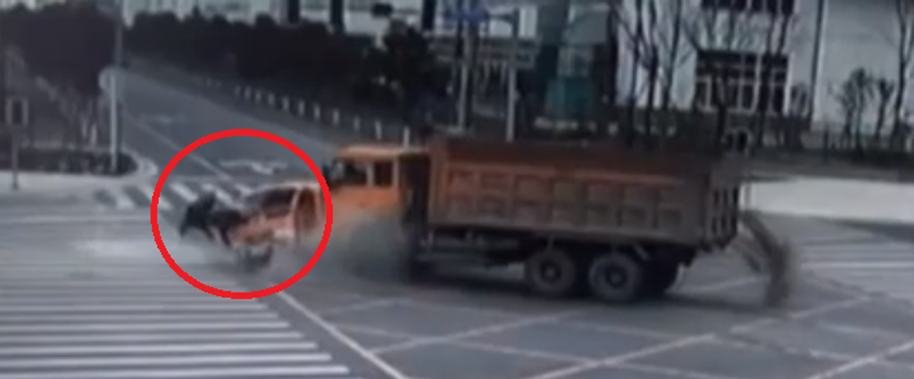 Hu Mojou a jeho manželka išli na červenú 5. februára. Na kamerovom zázname je vidieť, ako ich telá po zrážke vyleteli cez predné sklo. Aj keď ich vozidlo bolo po nehode úplne zničené, čínsky pár autonehodu prežil.
