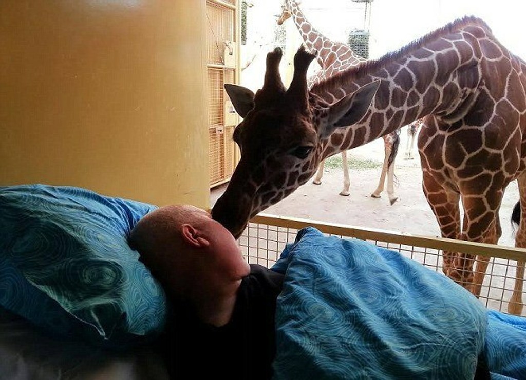 Za srdce vás chytí snímka, ktorá zachytila žirafu, ako sa priblížila k chorému a dala mu akoby "poslednú pusu" na rozlúčku.
