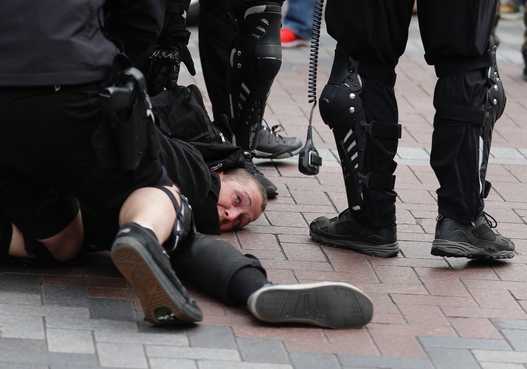 Nepokoje vypukli v centre Portlandu v štáte Oregon, kde časť účastníkov protestného pochodu začala na policajtov hádzať dymovnice a rozbíjať výklady a autá. Vo väzbe skončili asi dve desiatky anarchistov.