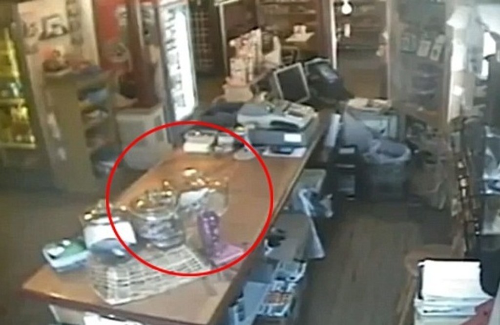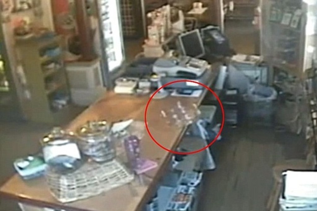 Bezpečnostná kamera zachytila skutočnú záhadu z obchodu v Gilforde vo Veľkej Británii. Predavačka sa prechádzala po obchode a keď odišla preč, mimo záber kamier, zo stola spadla sklenená nádoba.