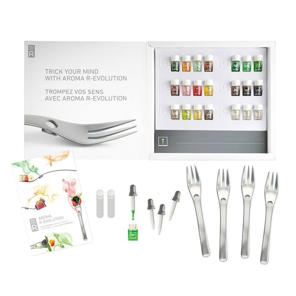 Hovoria im aj vidličky pre zábudlivých kuchárov. Vidlička vám dodá chuť. Aromafork teda vidličky prichádzajú s 21 rôznymi príchuťami. Funguje to tak, že na rukoväti je každá jedna vybavená kapsulou s tekutou arómou, ktorá sa postupne uvoľňuje do jedla.