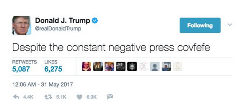 Slovo "covfefe" je vhodné použiť, keď "chcete napísať 'coverage', ale máte príliš malé ruky na to, aby ste obsiahli všetky klávesy s písmenami na klávesnici".