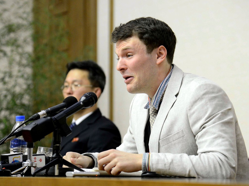 Severná Kórea prepustila Warmbiera po viac ako 17 mesiacoch zadržiavania v súvislosti s odsúdením za podvratnú činnosť. Mladý Američan sa na súde v slzách priznal z pokusu o krádež propagandistického plagátu, za čo dostal trest 15 rokov väzenia a nútených prác.