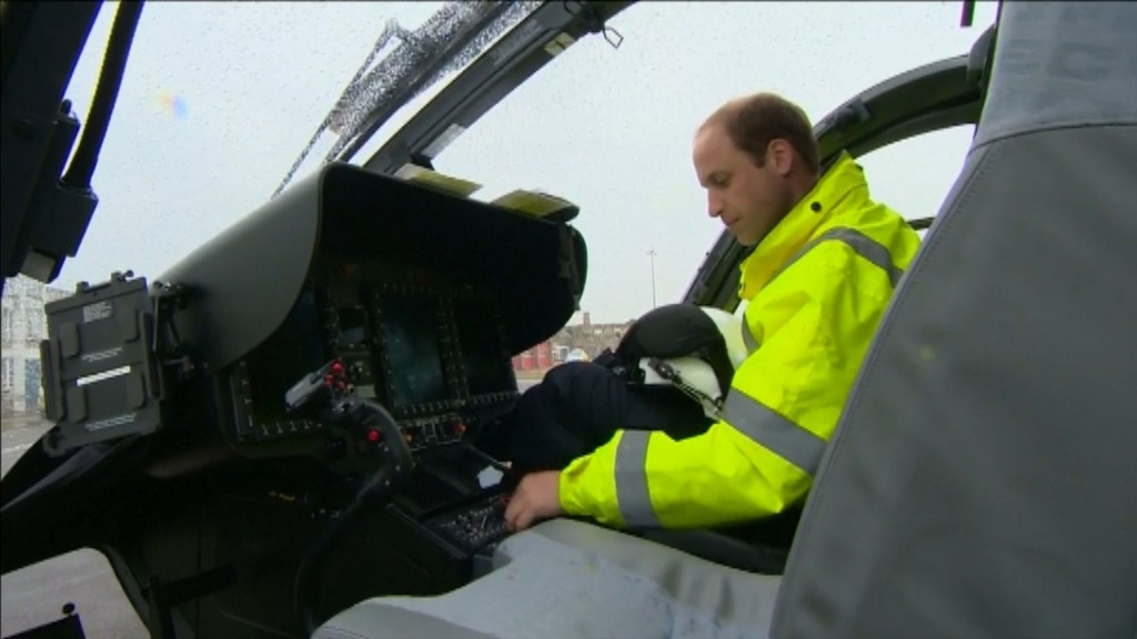 V marci 2012 bol princ William ako pilot vrtuľníka kráľovských vzdušných síl nasadený na Falklandské ostrovy, kde absolvoval pátracie a záchranné akcie na rozľahlom súostroví, pozostávajúcom zo 704 ostrovov. V rámci svojej vojenskej služby - do septembra 2013 - sa zúčastnil na vyše 150 vojenských operáciách. V júli 2015 začal lietať aj ako pilot vrtuľníka leteckej záchrannej služby East Anglian Air Ambulance.