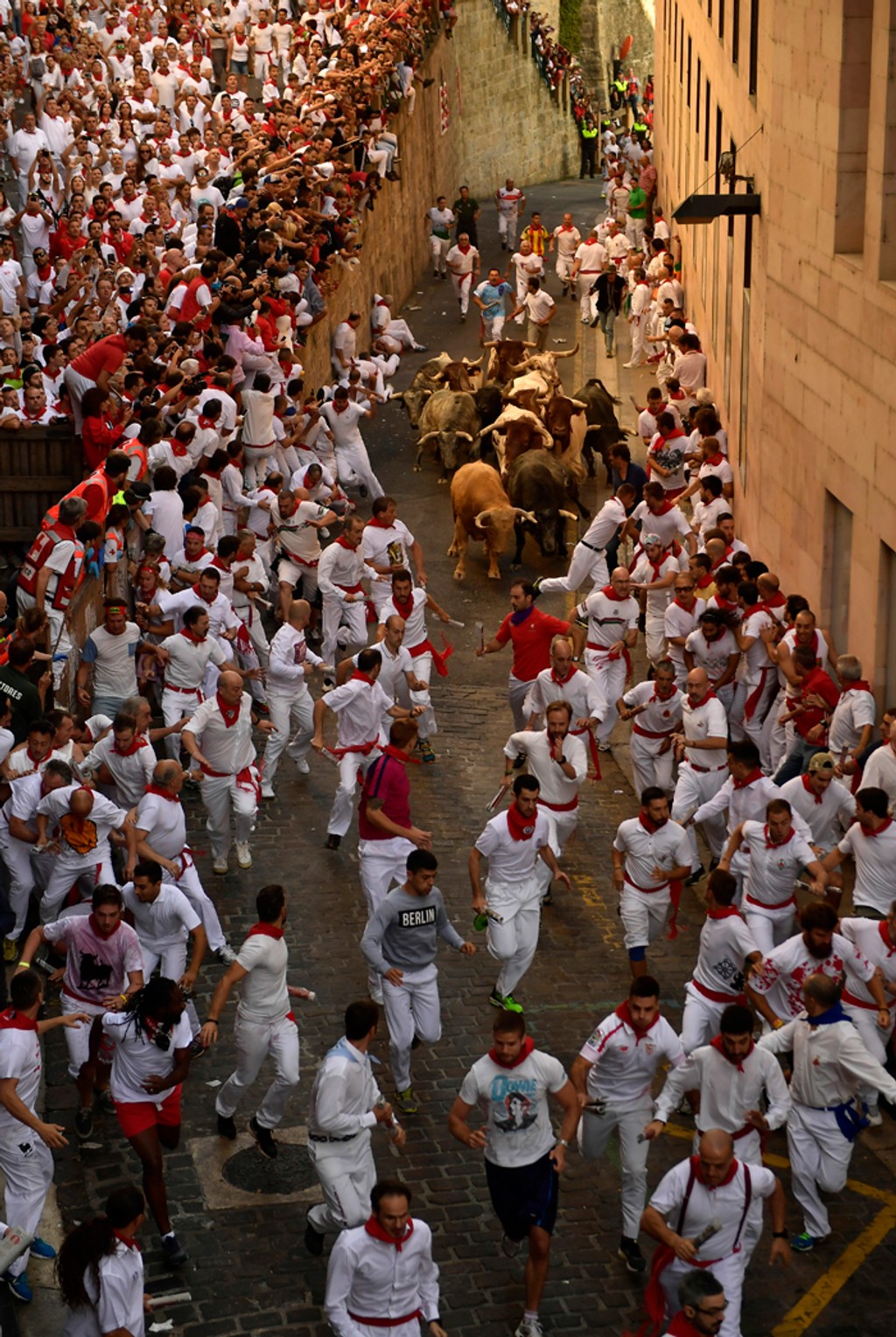 Deväťdňová fiesta sv. Fermína priťahuje tisícky návštevníkov z celého sveta. Odvážlivcov oblečených v bielych košeliach a červenej šatke čaká trať, ktoré vedie úzkymi ulicami stredovekej Pamplony, kde utekajú pred skupinou býkov.