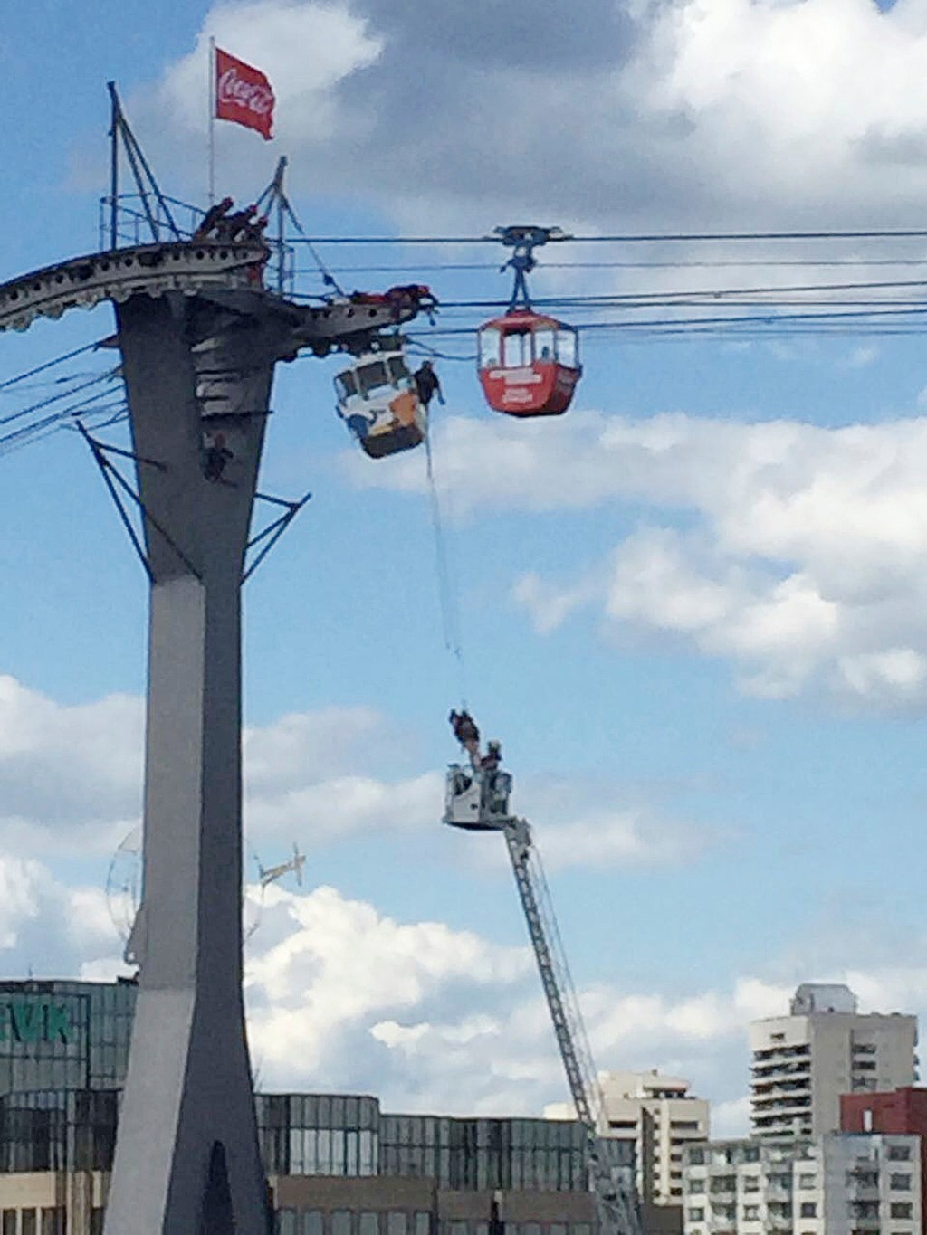 Záchranárom sa v nedeľu podarilo vyslobodiť 65 ľudí z poškodenej lanovky v nemeckom Kolíne nad Rýnom. Lanovka sa zastavila po tom, čo jedna z kabíniek narazila do podpery. Cestujúci tak ostali uväznení v kabínkach celé hodiny, niektorí vo výške 40 metrov nad zemou. Medzi nim bolo približne 20 detí.