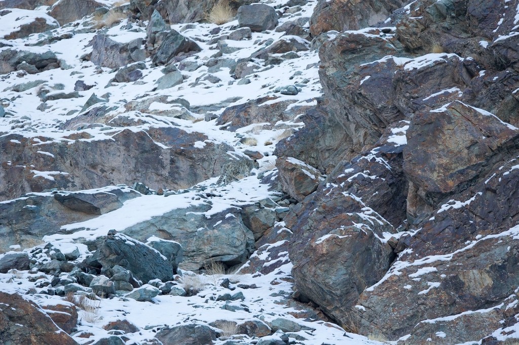 Čudujete sa, o čom hovoríme, lebo na snímke nič nevidíte? Určite nie ste jediní. Aby ste odhalili mačkovitú šelmu medzi skalami, musíte poriadne zaostriť zrak. Skúsený fotograf David Jenkins (41) čakal na stretnutie s leopardom snežným v mínus 20-stupňových Himalájach dva týždne. Jeho čakanie sa mu však vyplatilo.